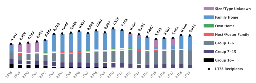 | Total LTSS Recipients | 7,326 | 7,248 | 7,159 | 6,637 | 5,889 | 5,569 |